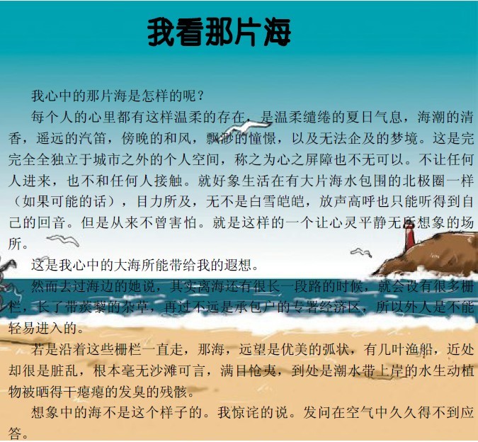 日(rì)期:2016-12-28 14:40:33£¶≈β 作(zuò)者:【文(wén)學作(zuò)品】我看(kàn)那(nà)≈Ω片海(hǎi)──财務部 施凱敏-江蘇逸帆建設工程有限公司