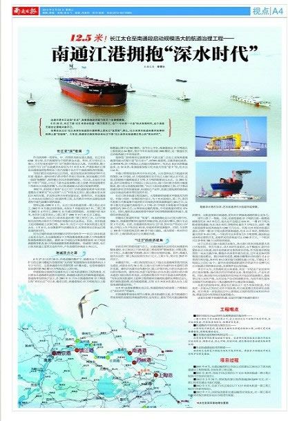 如(rú)果說(shuō)長↕ (cháng)江口12.5米深水(shuǐ)航道(dào)的(de)打通(tō♠" ✘ng)稱得(de)上(shàng)是(shì)長(cháng)江&l®≤dquo;龍昂首”,那(nà♣₽"♥)麽,12.5米深水(shuǐ)航道(d'♣♥γào)向南(nán)京延伸則稱得(de)上(shàng)是(shì)≈₹•“龍挺胸”。幾年(nián)後,南(nán) '≠通(tōng)沿江港區(qū)将迎來(lái)長(cháng)江下(xi£←à)遊12.5米深水(shuǐ)航道(dào)溯 ∑江而上(shàng)的(de)“深水(shuǐ)時(sh÷÷í)代”。
