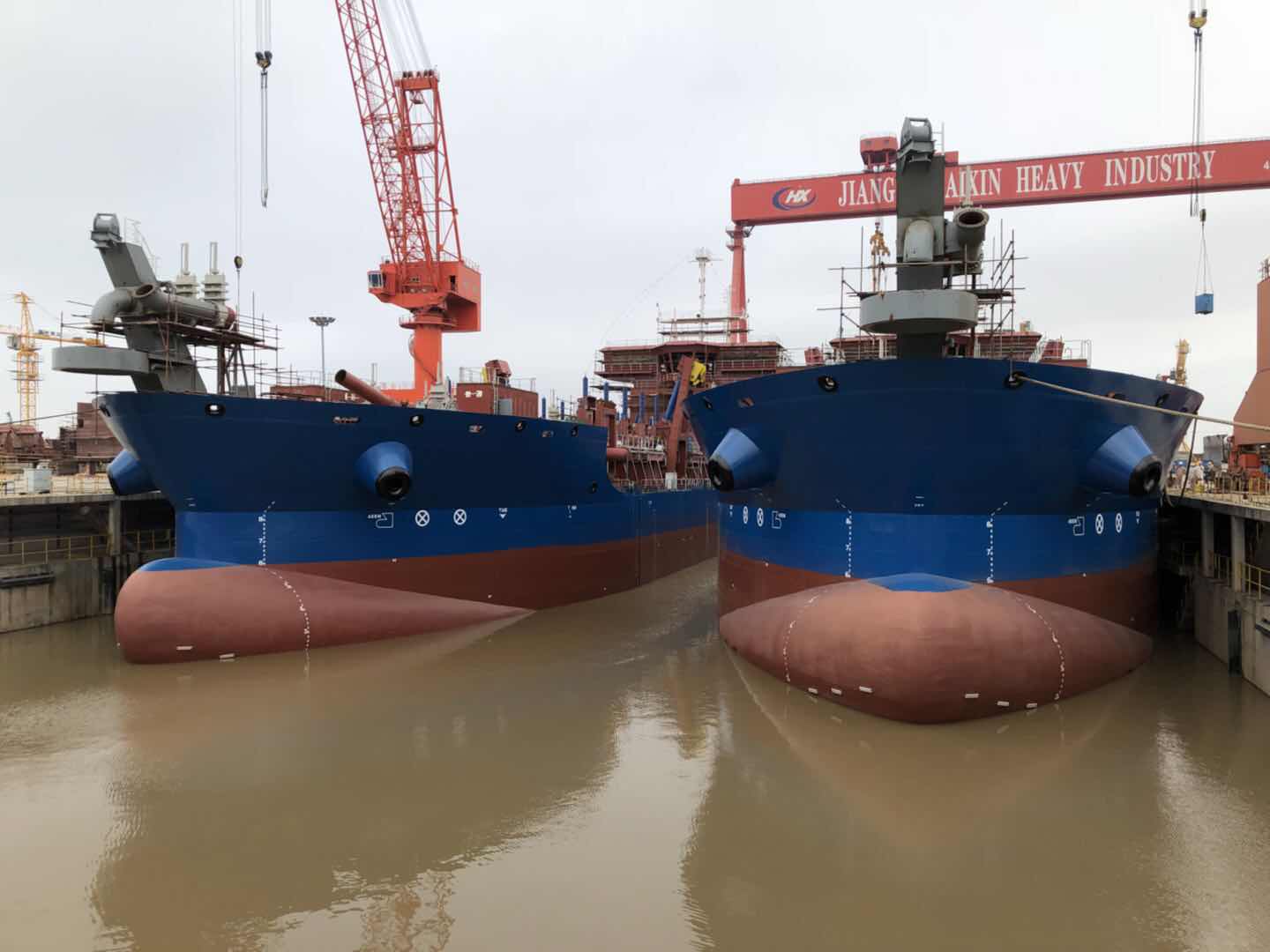 海(hǎi)新重工(gōng)兩條8000方耙吸式挖泥船(chuán)下♣ (xià)水(shuǐ)