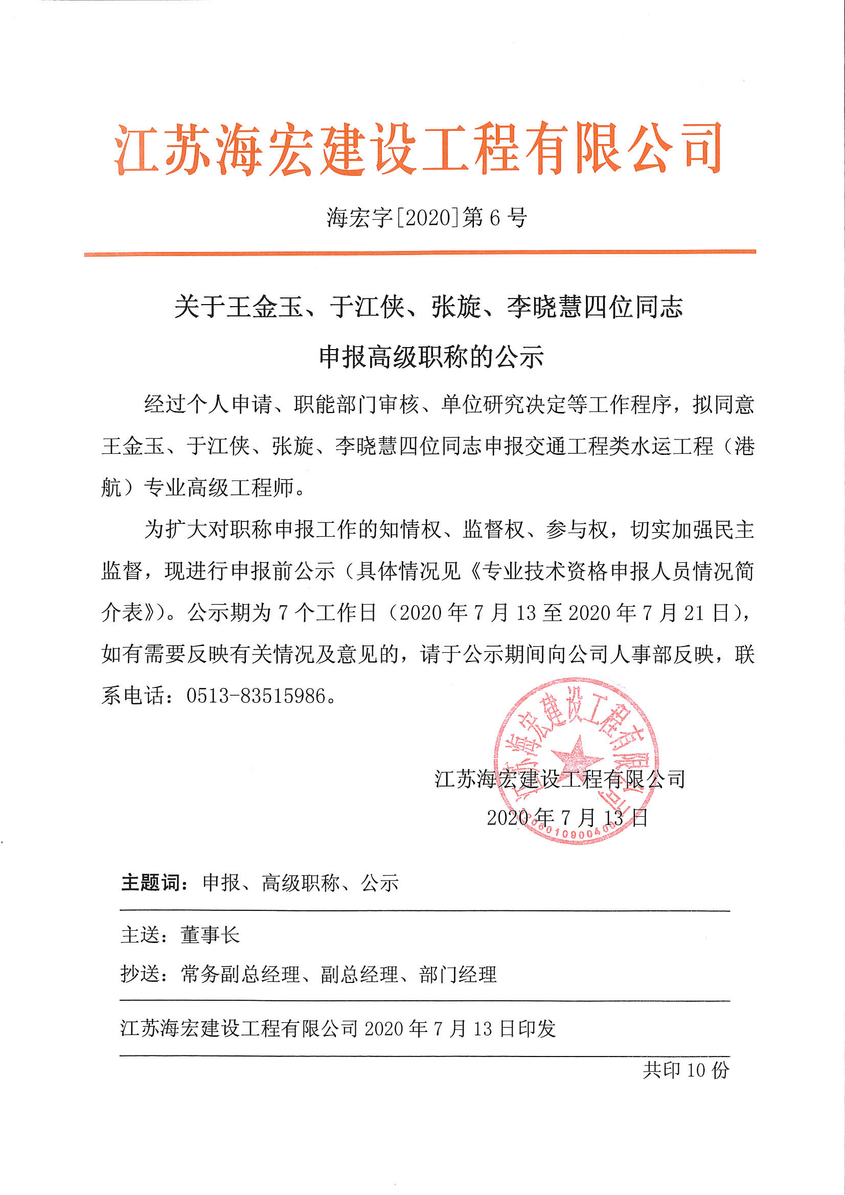日(rì)期:2020-07-13 02:01:§λ≈00 作(zuò)者:關于王金(jīn)玉、于江俠、張旋、李曉慧四位同志(zhì)申報← σΩ(bào)高(gāo)級職稱的(de)公示-江蘇♣δ±$逸帆建設工程有限公司