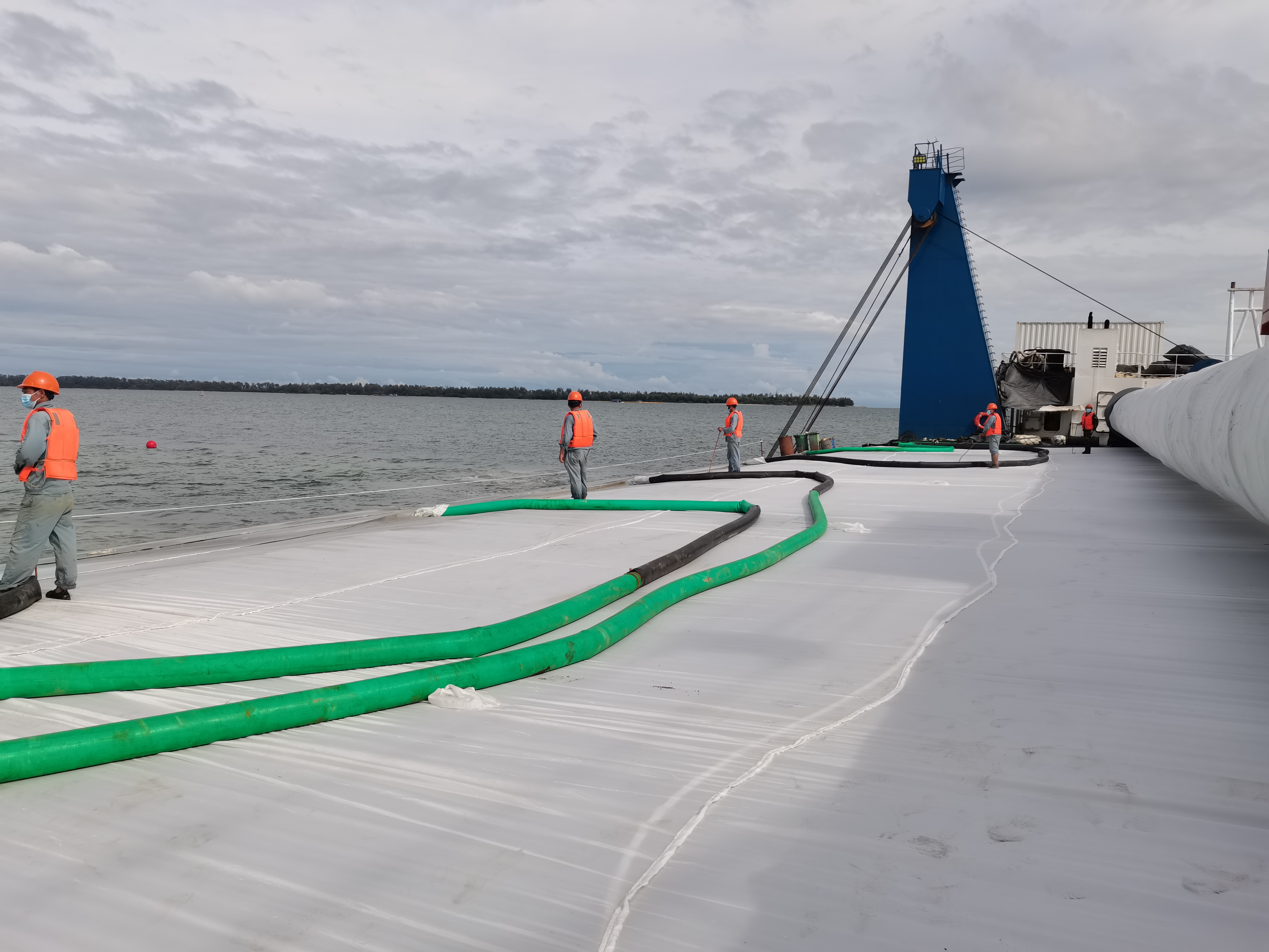 &nbsΩ↔♦p; 2021年(nián)8月(yuè)21©' ₩日(rì),随著(zhe)本工(gōng)程NTM(相(xi≤π©àng)當于國(guó)內(nèi)的(de)水(shuǐ)上(s₩♠ hàng)水(shuǐ)下(xià)施工(gōng)許可(kě)證,由海( ≠$hǎi)事(shì)局批發)的(de)獲取,本工(gōng)程≥™的(de)所有(yǒu)外(wài)部手續全部獲批₽☆¶,标志(zhì)著(zhe)本工(gōng)程的(de)>₽正式開(kāi)工(gōng)。截至2021年(nián)10月(®♦yuè)15日(rì),我們已完成北(běi)側堤¶λ£、東(dōng)側堤及火(huǒ)炬區(qū)所有(yǒu)↔ "↔區(qū)域約19.5萬m³砂墊層的(↑ de)鋪設,北(běi)側堤樁号B5+716~B6+014、東(d÷∑λ©ōng)側堤樁号D0+000~D2+019'∏塑料排水(shuǐ)闆的(de)插設,北(běi)側堤樁号B5+≥±♥731~B6+014、東(dōng)側堤樁号D0+γ¥000~D1+708砂肋軟體(tǐ)排的(de)鋪設,以及東(dōng)堤D0¶π+000~D1+319段水(shuǐ)下(₽÷xià)一(yī)層袋裝砂的(de)施工(δ≈gōng),已完成M1區(qū)吹填約1♠¥∞ 10萬m³。