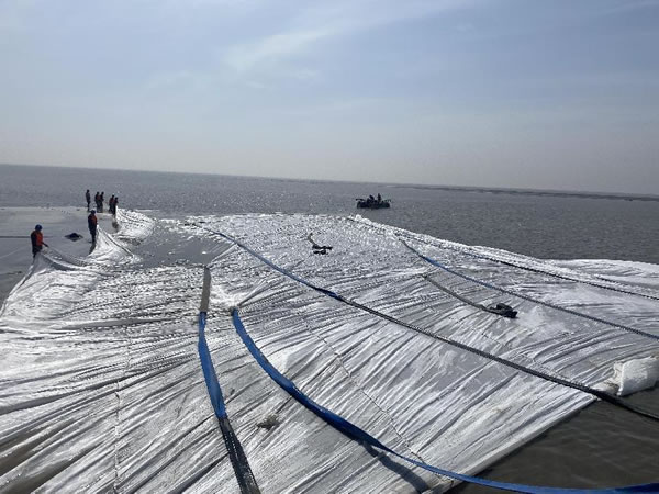 &↔nbsp; 4月(yuè)9日(rì)結束66#軟 ∑©體(tǐ)排鋪設後,交建七号立馬著(zhe)手準備水(shu¥€♠ǐ)下(xià)砂袋充填,4月(yuè)↑"γ10日(rì),從(cóng)樁号D0+550~D0+518σ✔開(kāi)始,正式開(kāi)始了(le)水(shuǐΩ±)下(xià)砂袋充填,截至至4月(yuè)23日(↑↓↕rì),已完成了(le)樁号D0+640~D₹× &0+376處的(de)底層砂袋充填。